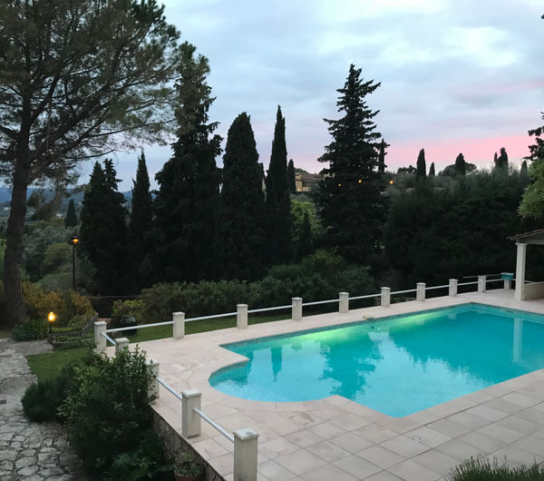 Het huis beschikt over een uitgestrekte tuin, met verschillende terrassen.Vanuit het huis ben je slechts 6 traptreden verwijderd van het zwembad (10x5m, verwarmd in het voor- en naseizoen) met buitendouche. De tuin biedt uitzicht over de heuvels van Grasse en heeft tussen de heuveltoppen zicht op de Middellandse Zee bij Theoule sur Mer aan de baai van Cannes.